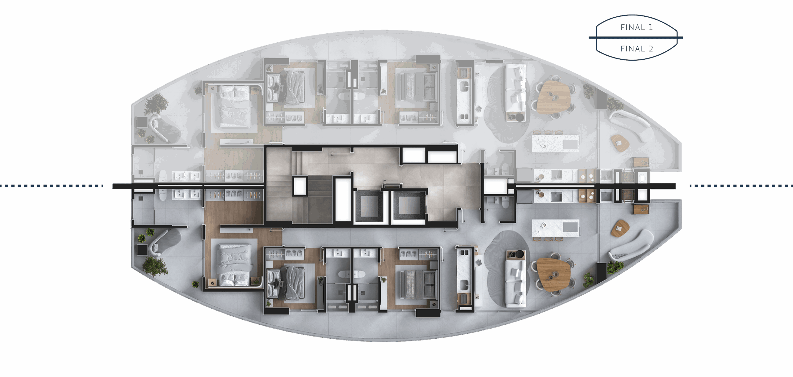 A vista mar é permanente e acompanha cada cômodo, reforçando a sensação única de viver pé na areia. Nos acabamentos, você conta com a curadoria para personalização de cada escolha, criando um espaço único e verdadeiramente seu.